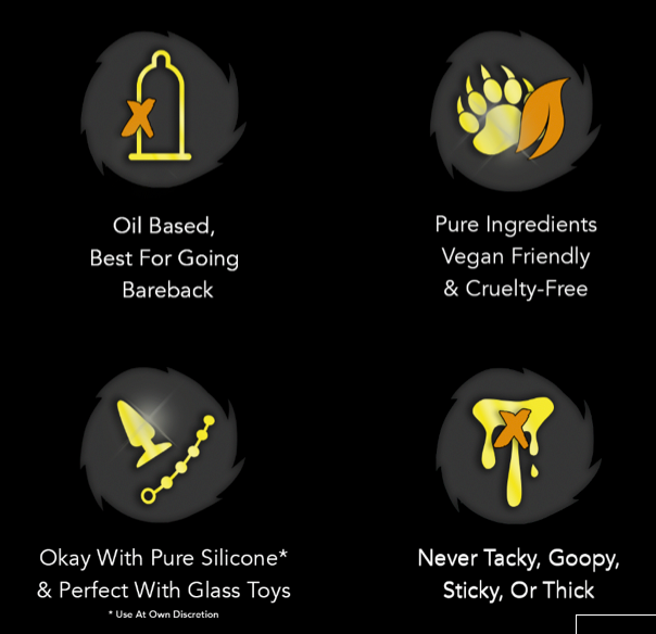 Lube- more liquidity than I originally thought. But you know the lubes you but and seem to have to use more and more. NOT THIS LUBE! Just dip, finger it out, apply and you will see how long it lasts. Also, smoother, “cleaner” and all around the best lube I’ve tried. And I have tried A LOT!!
