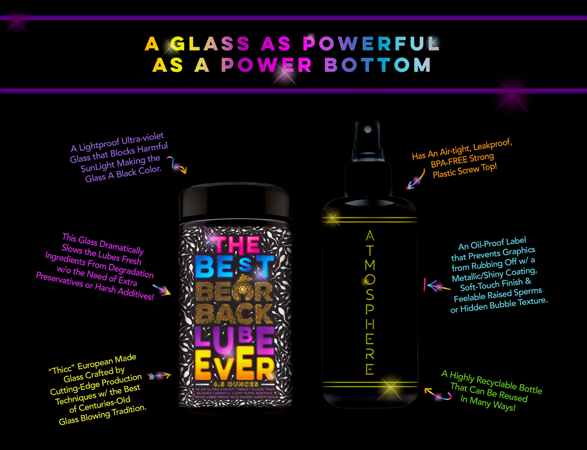 This unique glass filters out specific light frequencies, safeguarding and revitalizing the natural ingredients within while significantly extending their shelf life. It's like providing your lotion with a cape, protecting and enhancing its potency. This is the same type of bottling that our flagship lube, "The Best Bear Lube Ever," arrives in.